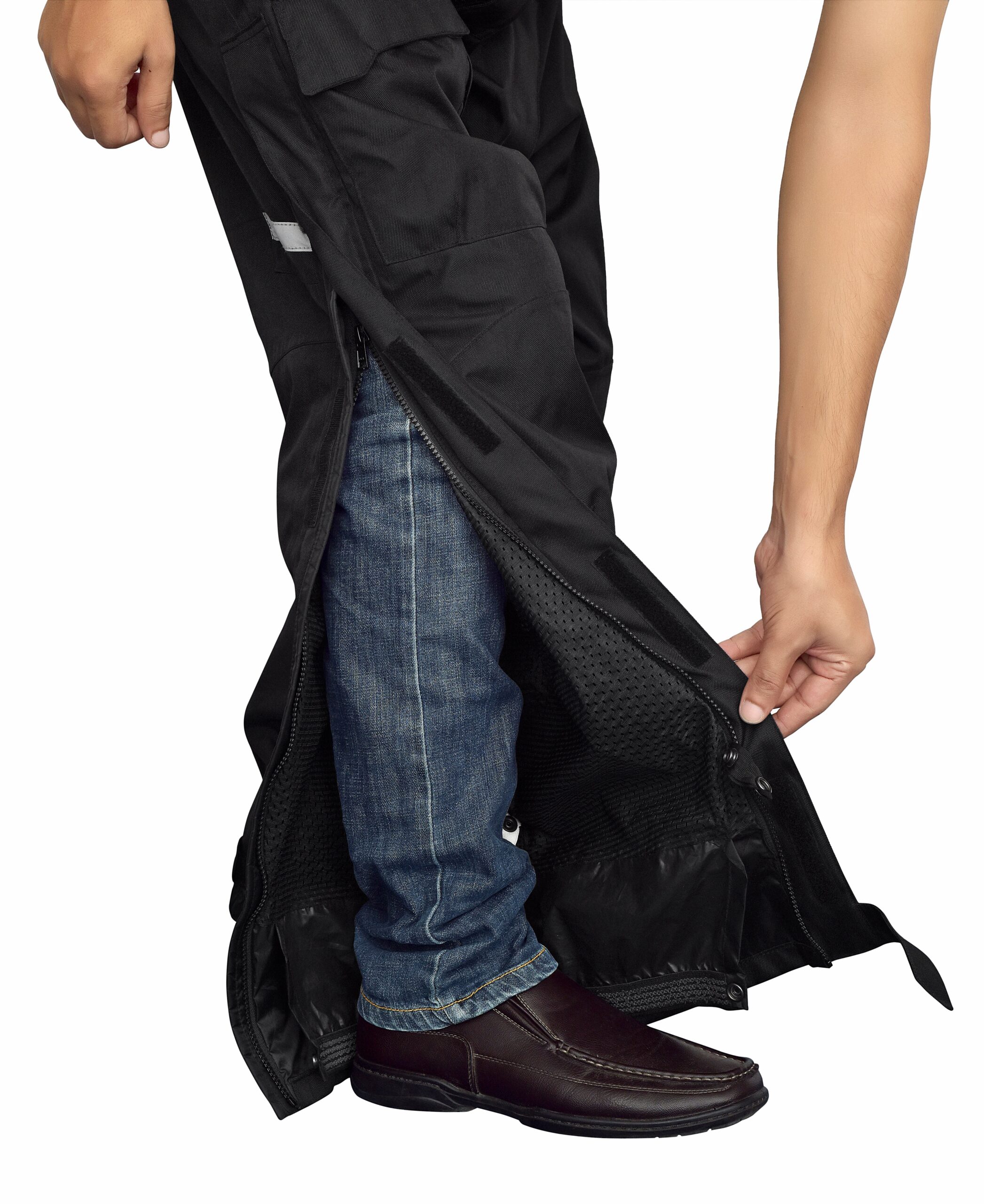 These Motorcycles over Pants are designed to be worn over your regular pants. Use these motorcycle pants men are for your daily commute to stay dry, comfortable and protected. These men’s motorcycle pants have a 26” long side double zipper for easy wear and removal. Use the double zipper feature for ventilation. These motorcycle pants can be used as tactical waterproof pants, motocross pants, motorcycle armor or water-resistant pants men.