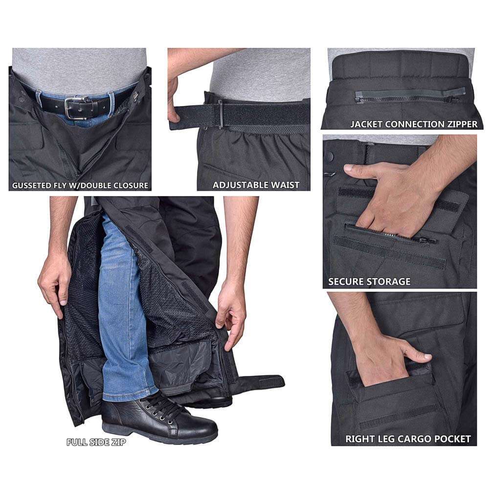 These insulated pants for men were manufactured and tested to ensure the highest quality is known for. We stand behind this product and provide longtime manufacturer warranty against any defects. These motorcycle rain pants have reflective material on rear thighs for night-time visibility.