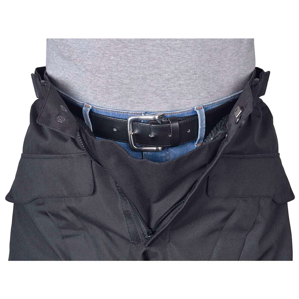 These men motorcycle pants with armor come pre-installed with CE-rated (EN 1621-1) Hip and Knee armor for safety and protection. Knee armor on these waterproof motorcycle pants is height-adjustable for optimal protection. Waist belts and elasticated waist panels on these dirt bike pants help fine tune the fit. These motocross pants can be worn over biker jeans and motorcycle jeans.